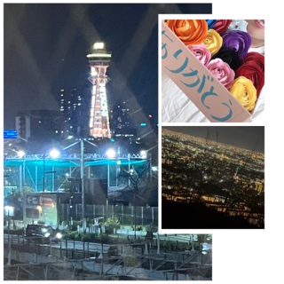 今日の写メは、手作りのお花と通天閣です