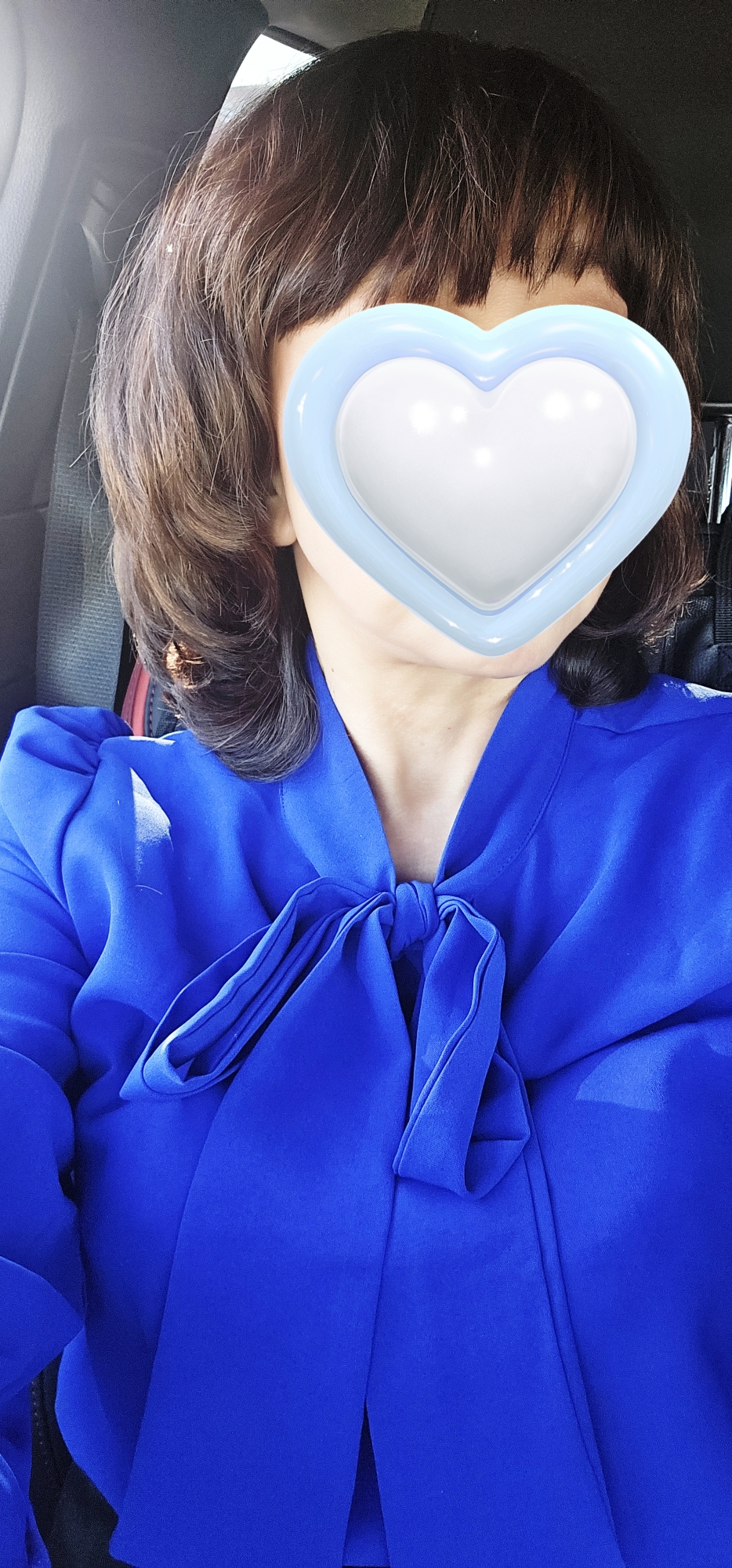 ブルーのブラウスに黒タイトスカート
